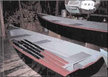 In the following bilingual discussion, my bad French and his broken English, it turns out that he uses high quality MDO plywood called Crezon for his works of art. And yes, business could be a lot better. Then comes my biggest surprise. It turns out that there are no drawings available. They are built by eyesight. I think you all will enjoy seeing a copy of the first page of the leaflet, and the photographs. It may even give you some ideas. Sheers and Chines, Barend |