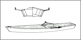 Four years after the kayak fiasco, I had an epiphany of sorts. I discovered that any pair of ordinary straight boards, bent around transverse spacers (bulkheads or frames) with angled ends,