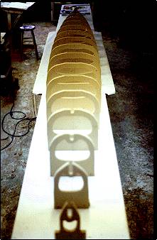 Not realizing they were unnecessary, I built the Beast with laminated oak ribs every 20”, and aggravated the situation by gluing the 1½” redwood strips directly onto the ribs, thereby creating a terrible mess when it came time to ‘glass' the interior.