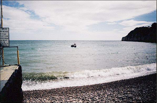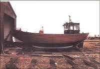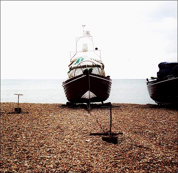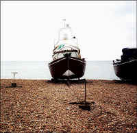 the shingle bank with a cable. Then the boat is winched up the slope over