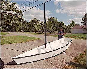 questions even if those questions seem simplistic or make you look foolish. What is obvious to the more experienced is not to the novice and having questions clarified before hand will save on mistakes. One example will suffice here: The boom of my sail is connected to the mast by a loop of line that allows for the boom to move without being blown so far away from the mast that it loses its ability to function. I assumed the loop went through the mast and the boom so I drilled a hole in the mast to accommodate the line. After drilling, I thought about the forces of wind working on the mast and figured I had just undermined the structural integrity of the mast to stand up to these forces. Do not drill first and ask questions later. If there is any doubt at all, seek the designer’s advice. It is gracious folks like Dave Carnell who can make your building experience a little less hairy. |