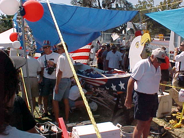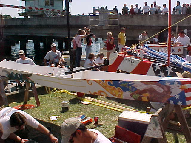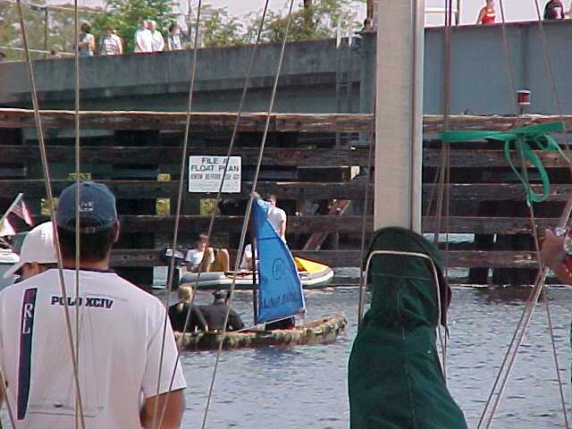 These pictures were taken Sunday. The building was on Saturday. They were rigging sails etc.. Parade at 1:15, race at 1:30.