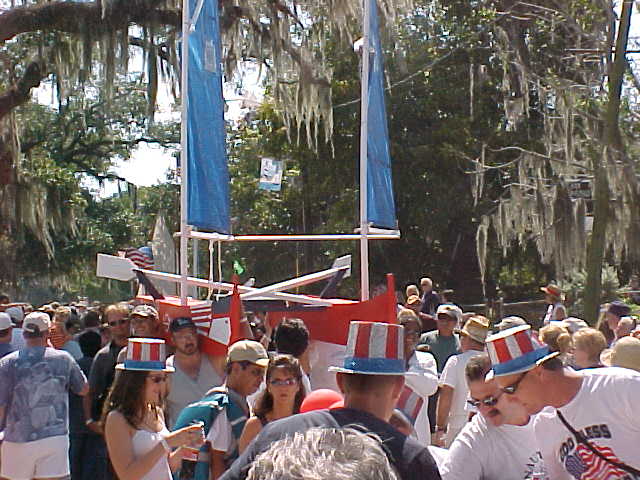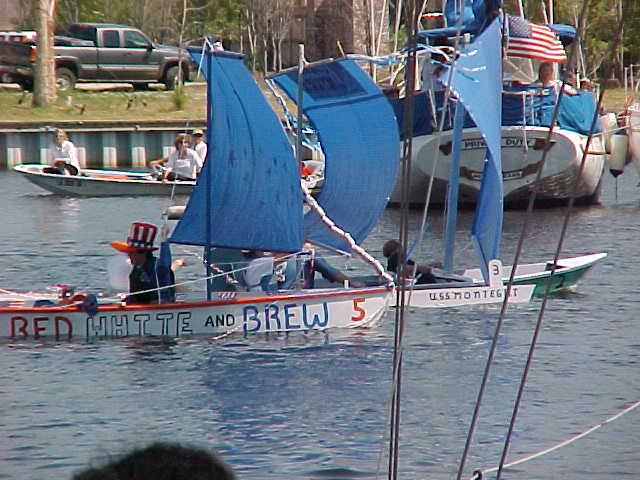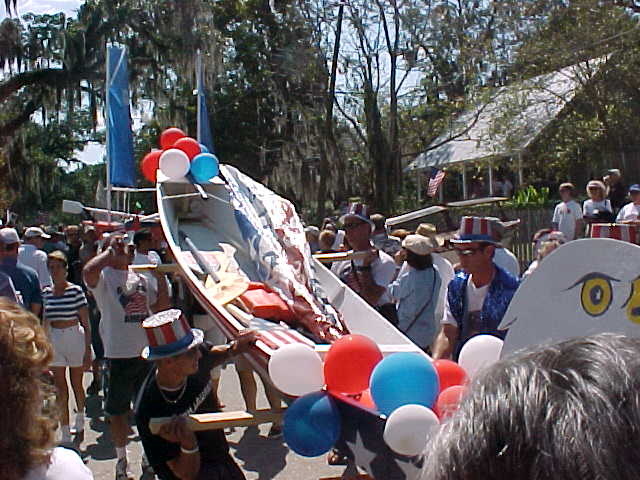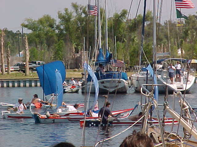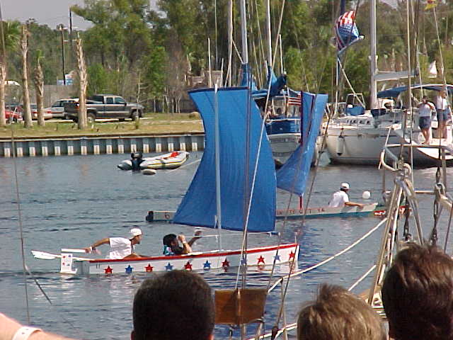 The parade and race were really fun to watch. The boats actually sailed downwind well. None had centerboards and all had to paddle upwind. |