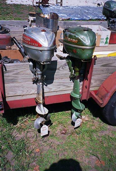 existence for outboards going back into the 60’s and earlier. “The Old Outboard Book” by Peter Hunn, 1994 edition, has a price guide, but don’t take it as gospel. First of all, the info is 7 years old. Second, the prices were based on a very small sampling taken in one area of the country. Third, price varies a lot due to condition. For example, a mid 50’s Johnnyrude 5 1/2 in top condition (basically show-room new, and I have only seen a handful meeting that criteria in 9 years of collecting) has a book value of 200 bucks. The next step down ( scratched paint and decals, maybe a missing control knob) is 120 bucks, a rather drastic percentage drop, and the value slide continues down to 20 bucks for a “parts engine.” The collector wants engines that that look original and can be made to run good. If you can live with a barn-red- brush-applied repaint job, you can often buy these engines cheaper from collectors than you can from the widow down the block who remembers the many enjoyable hours her late husband spent fish’n with his trusty outboard. I aint suggesting that you try to rip-off widows; just be aware that memories can inflate values. Meanwhile, the real value of “The Old Outboard Book” is the appendix, which lists model numbers and model years for many old outboards. And it is a good read.