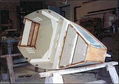 Microtrawler, might be an option. I have more time than money and sense, so I started. Below are pictures of Teal before I started and the process of conversion. The end result is a boat that glides along very smoothly and turns just as well as before and is less susceptible to wind pushing it from side to side.