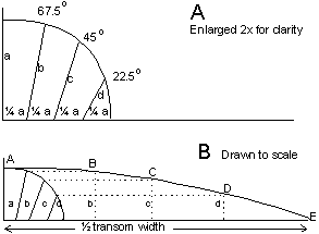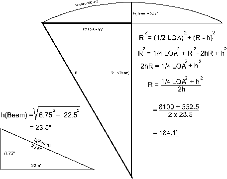 The sin of the bevel angle at the cross frame at station BBaC is 56"/184.1"
