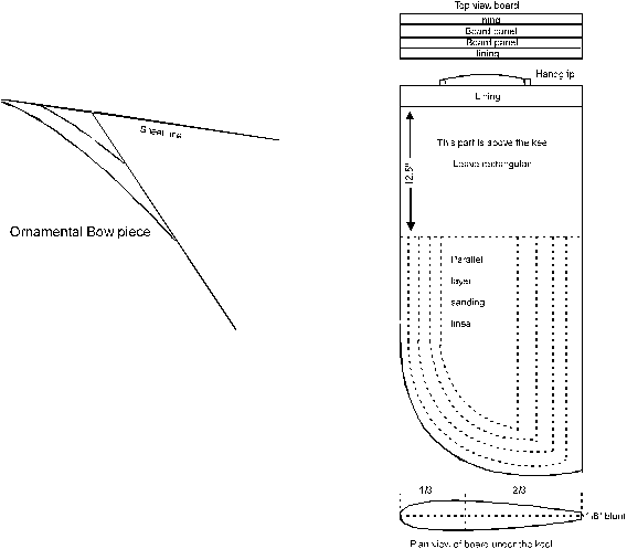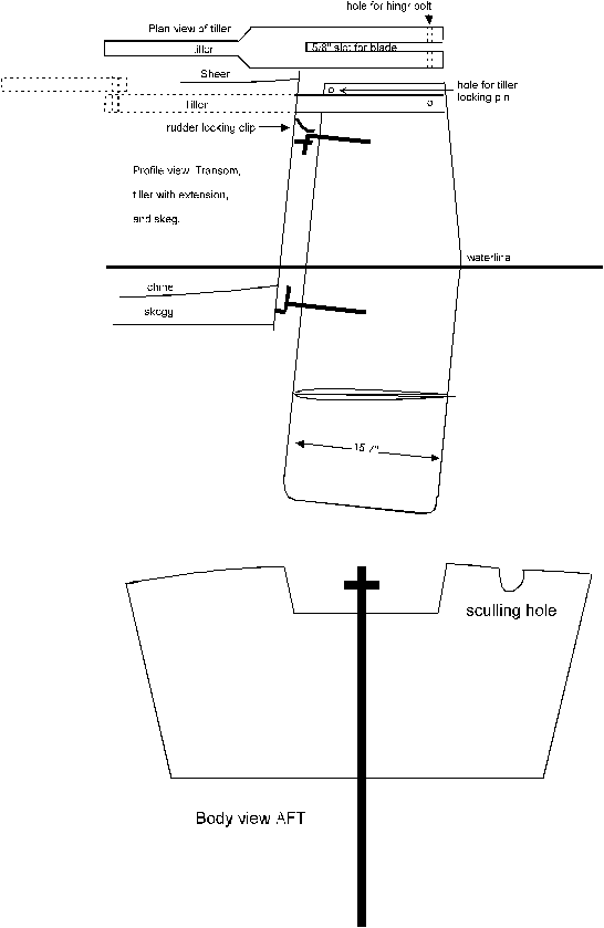board case. The trunk fore is l5" long. The lumber is anchored in the aft edge of the mast thwart as