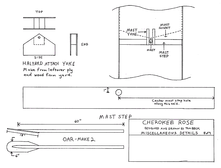 29. Construct blocks to accept oarlocks out of scrap left over from mast step. Locate these where they suit you.