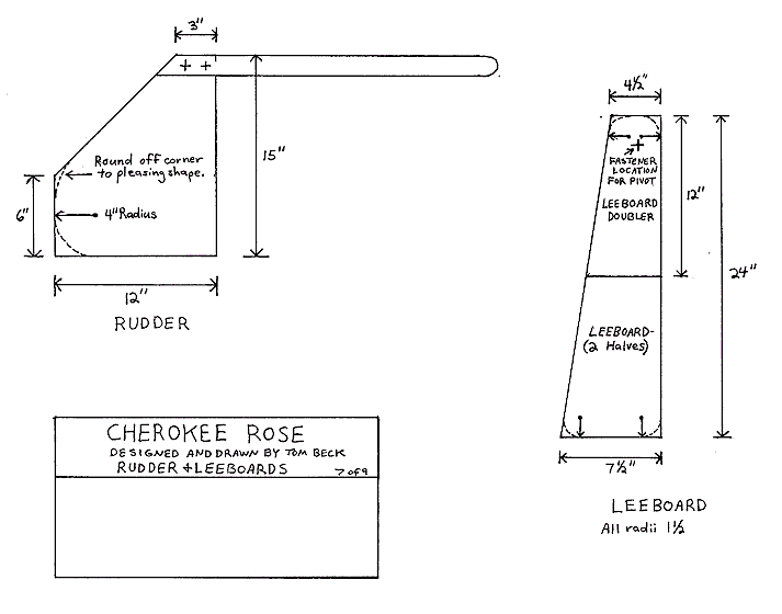 23. Cut out the leeboard halves and glue together, pretty side out. When dry, glue on leeboard doublers. Radius corners as indicated, and sand edges even and round off.