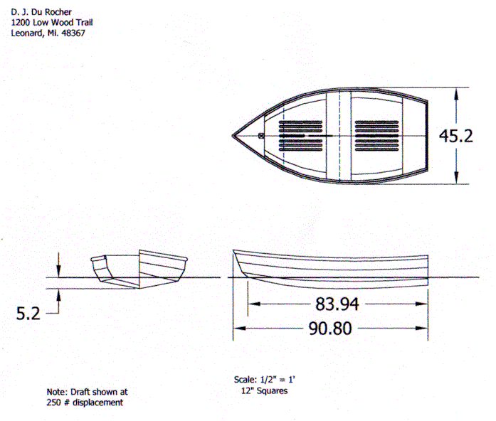 While being towed, TTB needs to plane easily and offer the minimum aggravation when maneuvering in tight moorings or being hoisted upon the cabin house. The estimated weight of the finished hull in the rowing configuration is about 100 pounds.