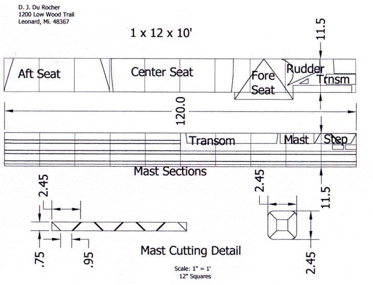 - h) Layout of dimensional 1x2x10' including mast cutting and sectional detail
