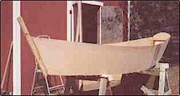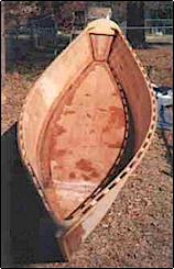 and the bottom is on, chines and butts taped, and she is back