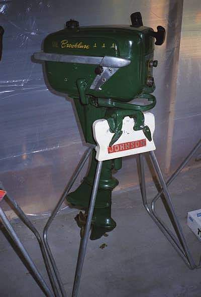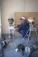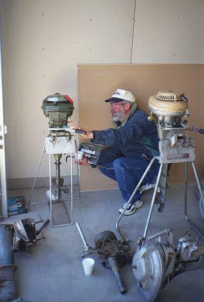 Jim Michalak (at right) checking-out a mid '50s champion 4.2 horse outboard.