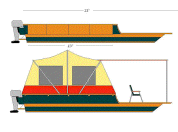 I found a great deal on a brand new Coleman 9x13 cabin tent with the doors in the end. The Tentboat hull is now 6x21 with a max beam of 7 feet with
