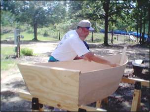 Monday afternoon by attaching the sides to the stem and transom. Tuesday