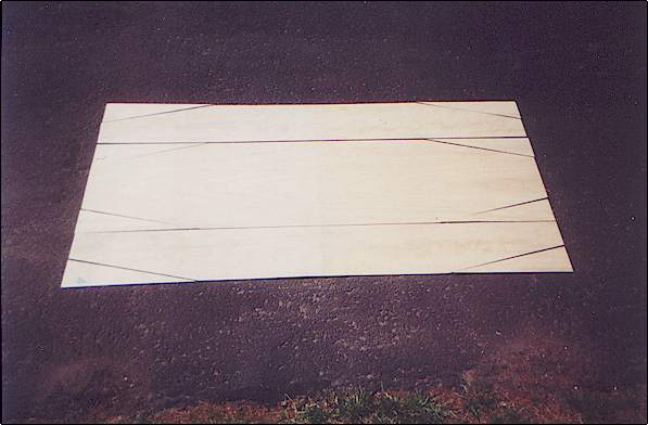 laid on top of, and temporarily clamped or nailed to, the 2 foot wide