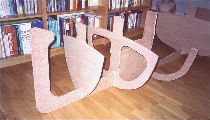 bought some cheap Meranti plywood and started cutting out backbone,