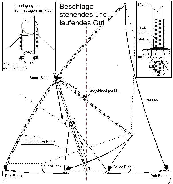 and the sitting plank, where the mast stands, cause the mast to bend.