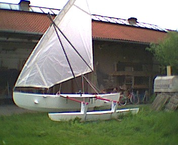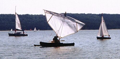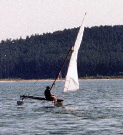 surf mast beams and with the 'test' sail made of polytarp.