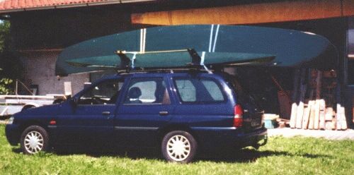 At last we were ready for launching. Transporting on top of the car