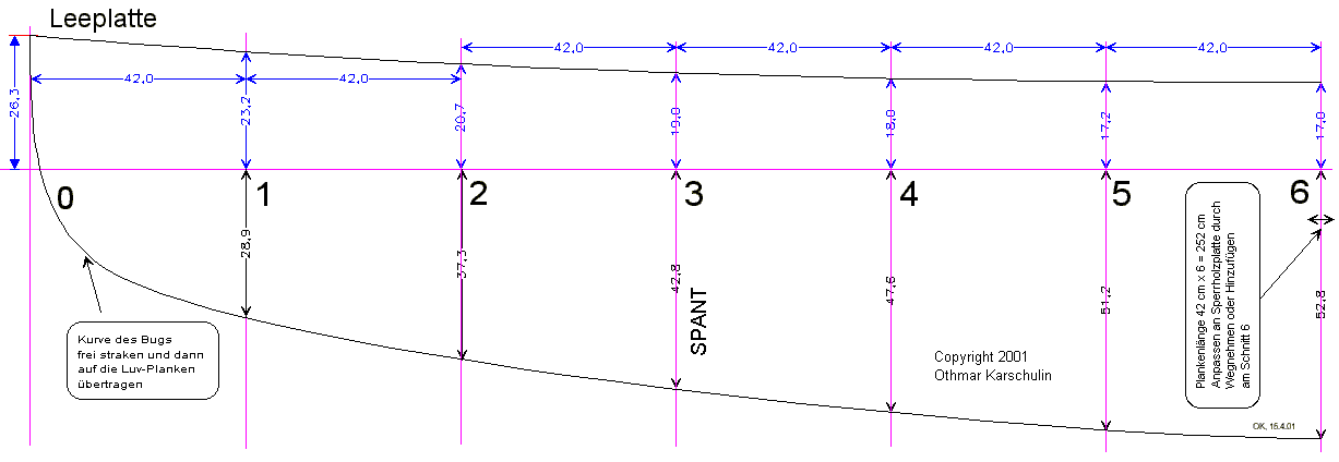 of the upper luff plank. For more stablity use a keel batten (20x20 mm) as
