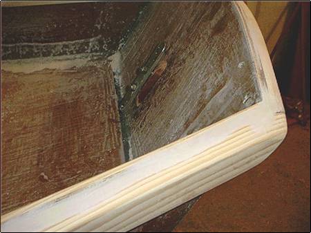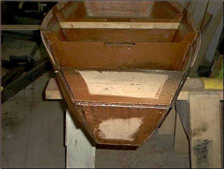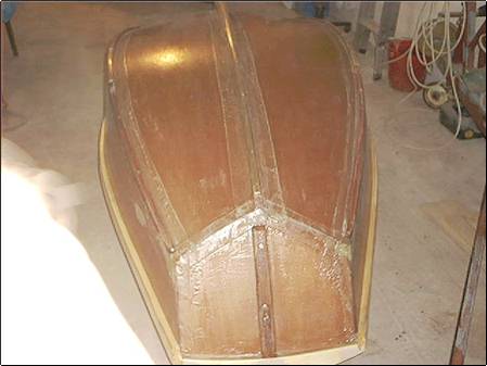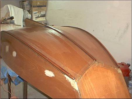 wide piece of ¼” ply shaped and glued in place. On the outside it’s