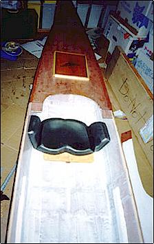 closed-cell foam at the forward end of the cockpit, measuring my own leg