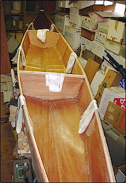 Back inside, the hull was ready for its covering of 6 oz. fiberglass
