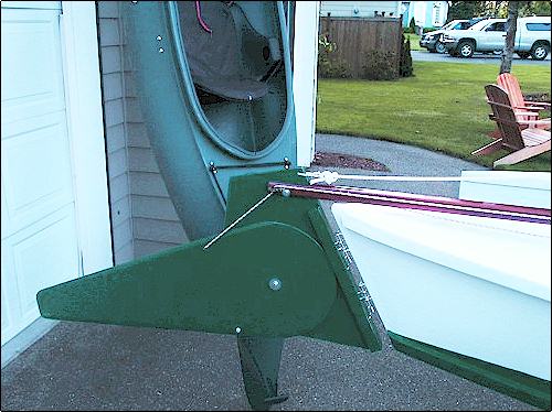string that lowers the rudder and pulled in the sail. Basic beach cat