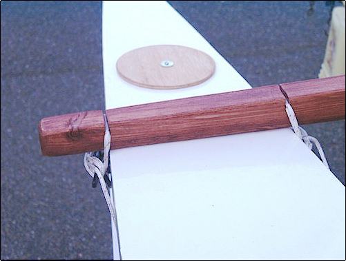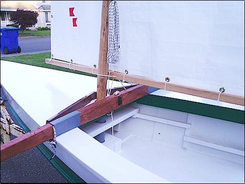next to the mast with a parrel, or line which I run to jam cleat. This