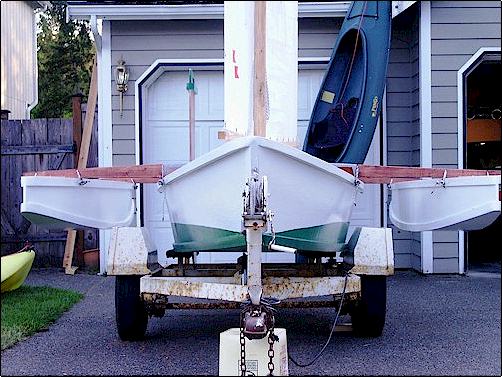 hull and bolted them to the amas. The boat still fits on my trailer. I