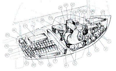 drinking water; (6, 17, 27) flotation foam planks: (1,3) bags of