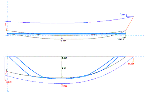 or rowing boat. The waterlines shown are at 300 lbs and 500 lbs. The bare