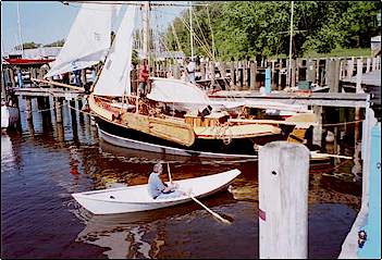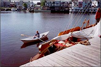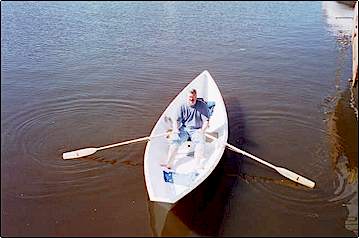 oarlock and tying it off on an opening in the sheer clamp. By adjusting