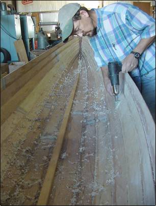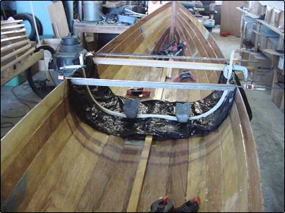 sticking to the epoxy. Once the glue on the garboard strake (the one next