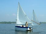 20 foot Cat Yawl sails and motors easily, even in the light air.
