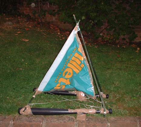 masts with equal sized white plastic bag sails. Initial trials
