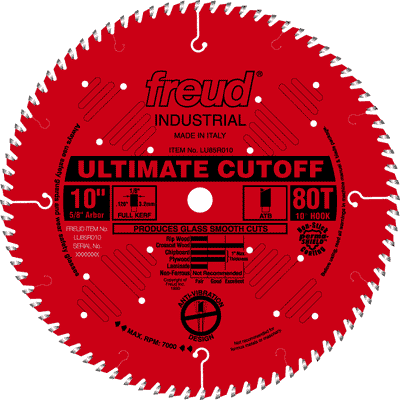 The first time the ultimate cutoff blade cut into wood it felt like magic. What was even better is the finish on the wood after the cut. The saw blade is the last and most important link in making a “perfect cut”. Freud has made sure that this link has been made foolproof. I would also like to mention that this blade will perform at its top by making sure you have a zero clearance throat plate installed on your saw. This will stop the edge of the wood at the bottom of the cut from tearing as you finish the cut. I never make a cut unless I have a zero clearance throat plate in place. The only exception to that rule is if I were to use a Dado set.
