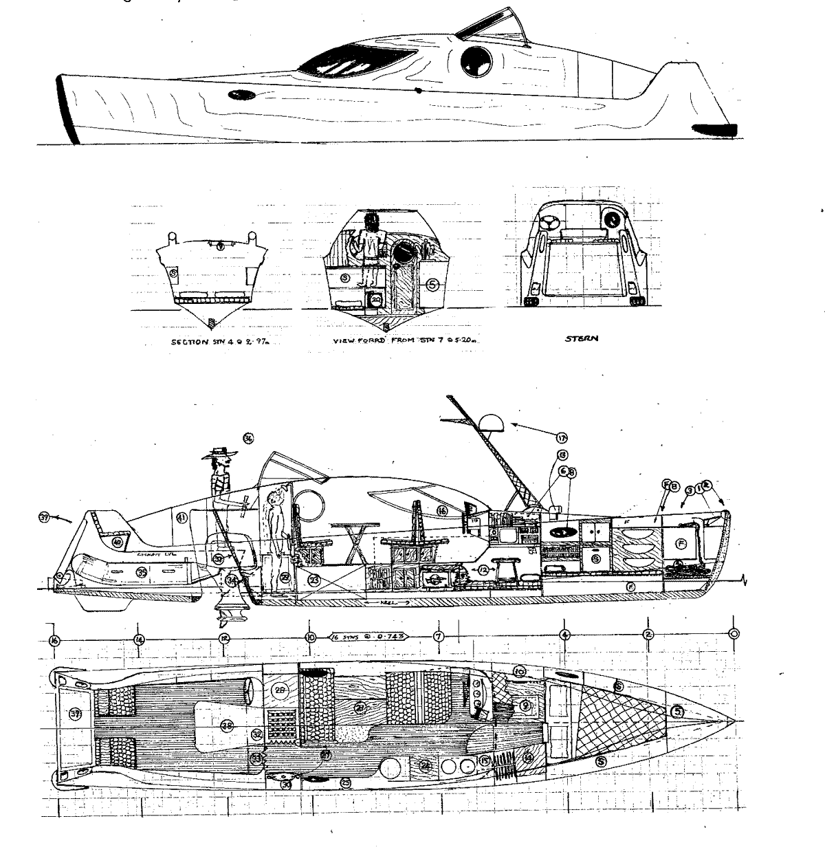Plans show a minimal fitout for a small group to cruise in uncluttered
