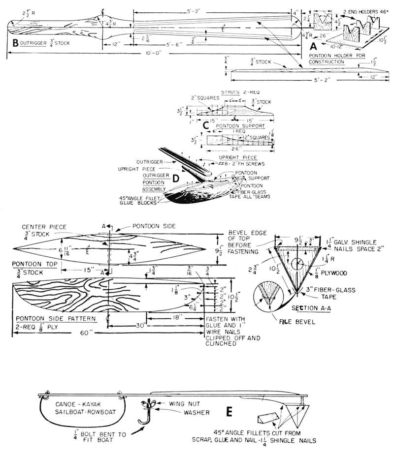constructing outrigger and pontoon for canoes, kayaks, and rowboats