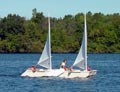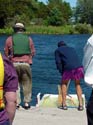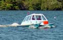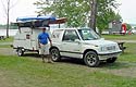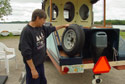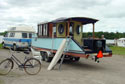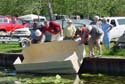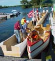 Drop trailer loaded with various Yakoos and skinboats. Here