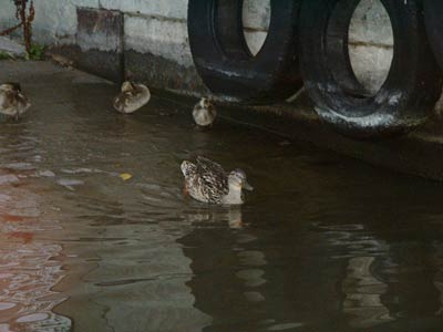 Twisted Seagull under a bridge to a floating dock, hopefully out