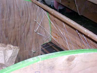the holes left will be concealed by the gunwales. Apply glue