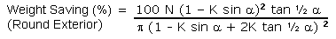 Weight Saving (%) = 100 ( Empty Area / Solid Round Area