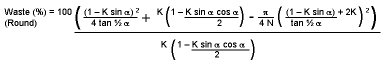 = 100 ( I.D. cos ½ a / O.D. ) 4