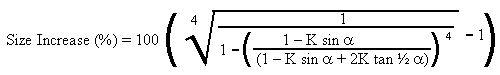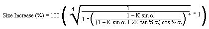 Size increase required for same strength as solid
