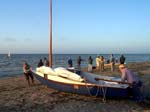 offshore, Oaracle, its reefed sail up, had to be waded out,
