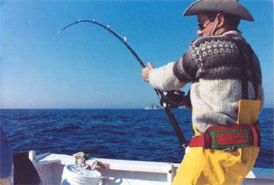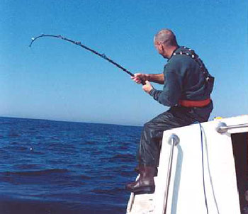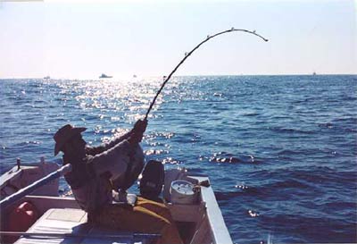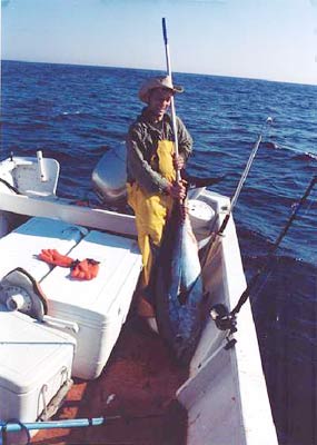 gaff and hit the tail and we boated our first Tolman Bluefin