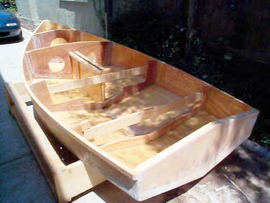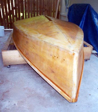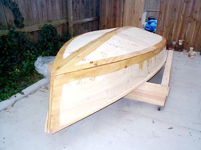A little more than a year after deciding I needed a sailboat, I've moved once and changed jobs twice, but I'm still working on Skat. I finally got started last November, a little less than 6 months after the decision. I have the outside of the hull painted, I've carved the tiller, and I've started on the mast and a pair of oars. Still to come are interior paint, framing, and decking, centerboard, rudder, sail, rigging, and a trailer.