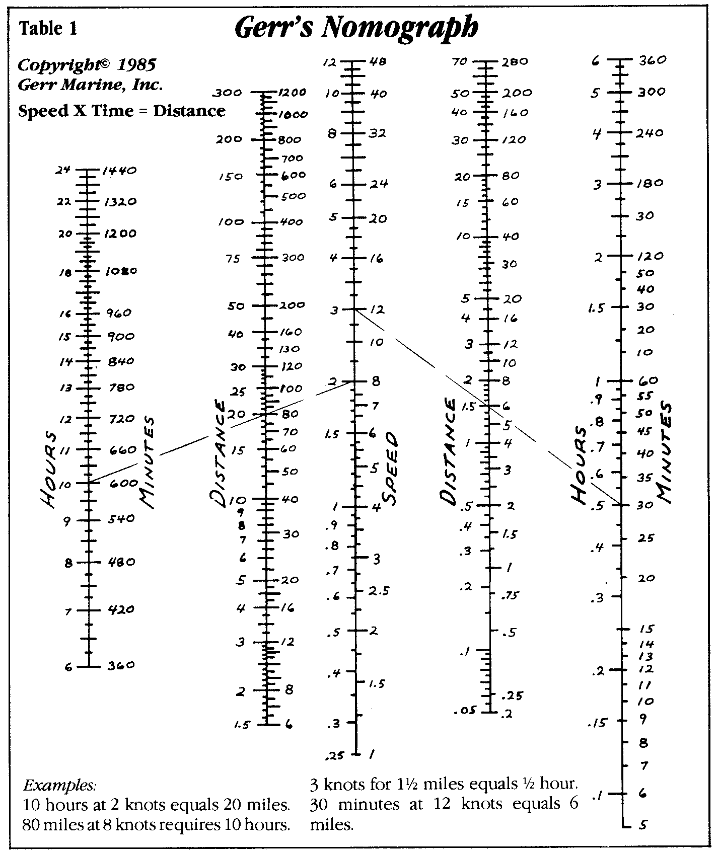 knots = 1.6 hours). Using Gerr's Nomograph, you can also see that
